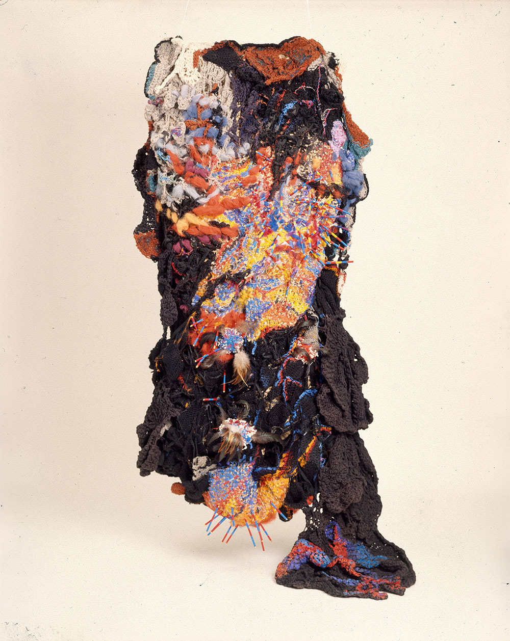 This work reflects my despair at the violence, turmoil and confusion during the time of the struggle for freedom from apartheid. The work resembles a burning and charred landscape and a huge dying beast, pierced and stabbed, with its life-blood draining out. It was my expression of the explosive carnage of the time.